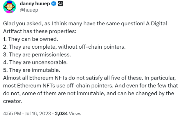 Although the procedure itself can’t stop rip-offs, Rodarmor actively constructed Ordinals with Bitcoin perfects at the leading edge of his style choices. For example, the Ordinals application of digital artifacts is objectively exceptional to the method nearly all NFTs were carried out on Ethereum and other chains. Danny Huuep explains the homes of a digital artifact, all of which Ordinals fulfill, very well: