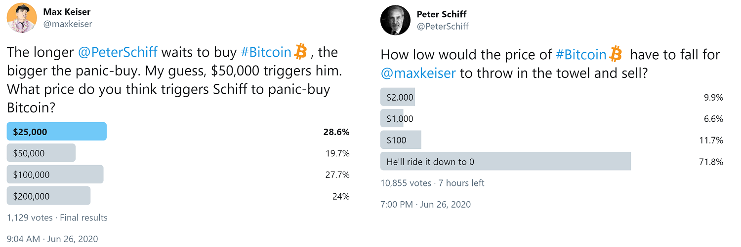 “The longer Peter Schiff waits to purchase bitcoin, the larger the panic-buy. My guess, $50,000 activates him,” Keiser composed. He then continued to install a survey, asking his 229.1K fans, “What rate do you believe triggers Schiff to panic-buy bitcoin?” The alternatives were $25K, $50K, $100K, and $200K. Most citizens think that when the rate of bitcoin is $25,000, Peter Schiff will worry purchase.