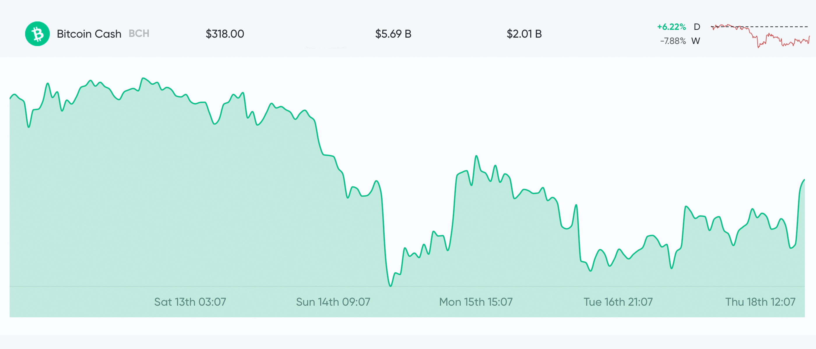 ETH is switching for $225 per coin at press time as the cryptocurrency recuperated 5.2% of its losses throughout the earlier early morning trading sessions. Following ethereum, ripple (XRP) is trading for $0.32 per XRP, down by 2.3%. Litecoin (LTC) is switching for $101 per coin and down 1% over the last 7 days. Bitcoin money (BCH) is below litecoin’s market cap in 5th position as each coin is trading for $318, down 7% for the week.