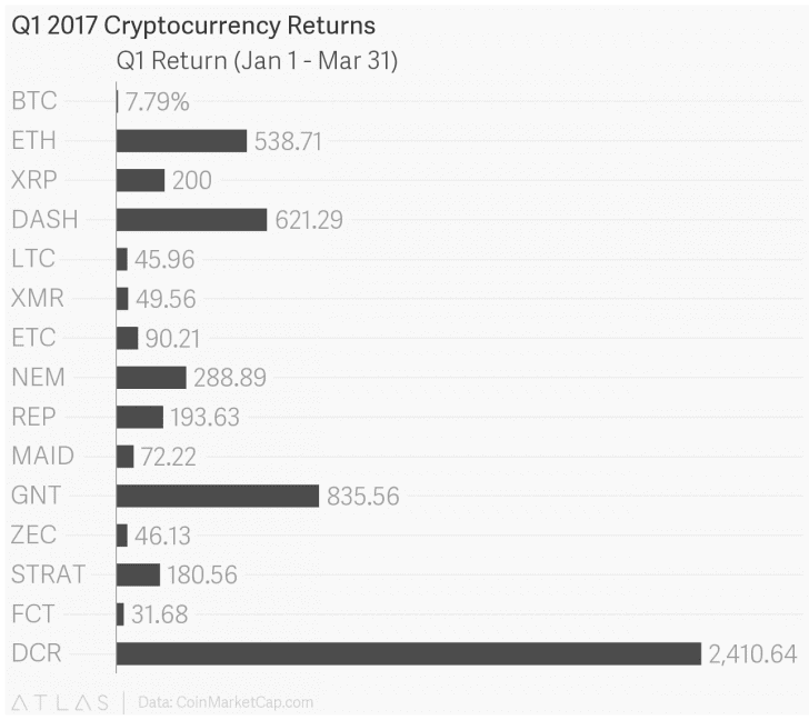 Thevery first quarter of 2017 saw remarkable cost gains for the top cryptocurrencies, as the overall market included almost $7bn in worth.